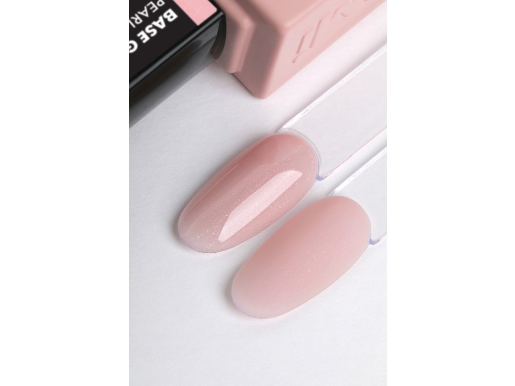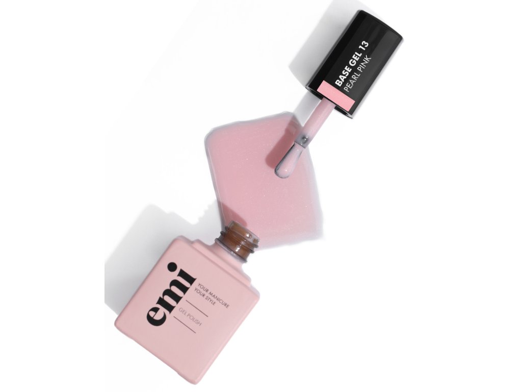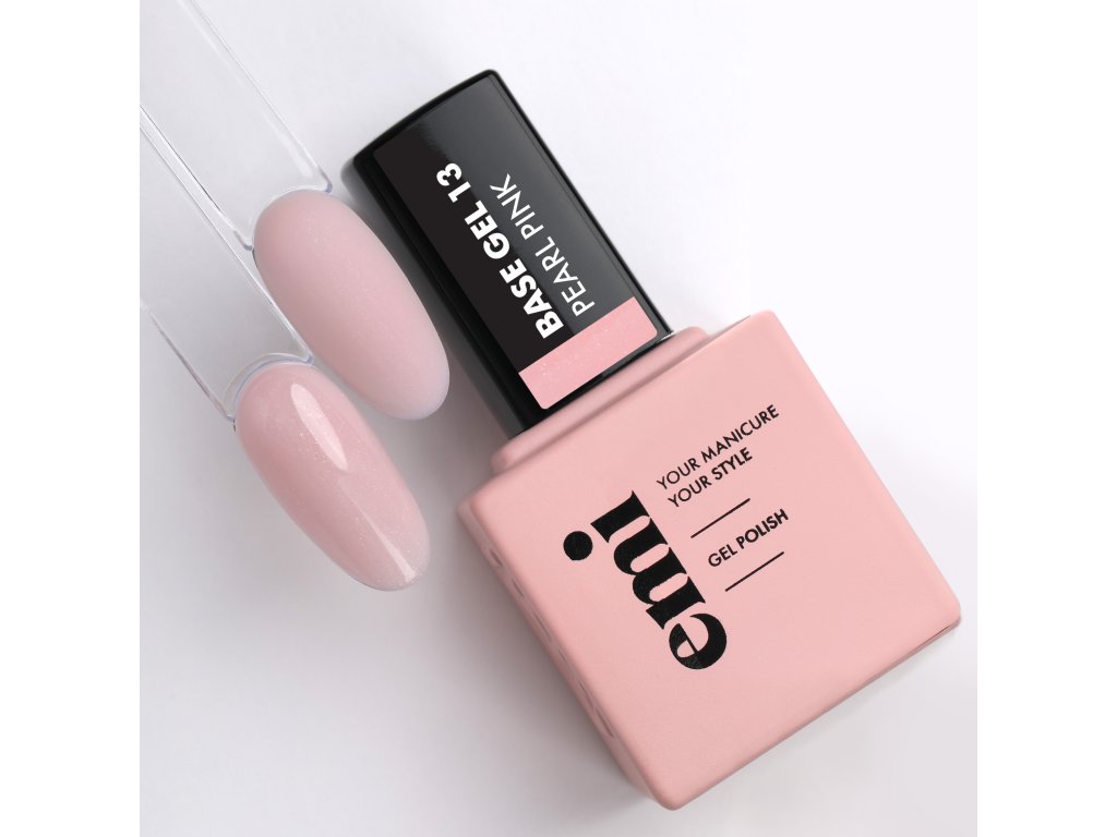 E.MiLac Base Gel Pearl Pink No. 13 je jemný růžový kamuflážní gel-lakový základní gel s jemným třpytem na manikúru; používá se k vyrovnání a modelaci nehtové ploténky.