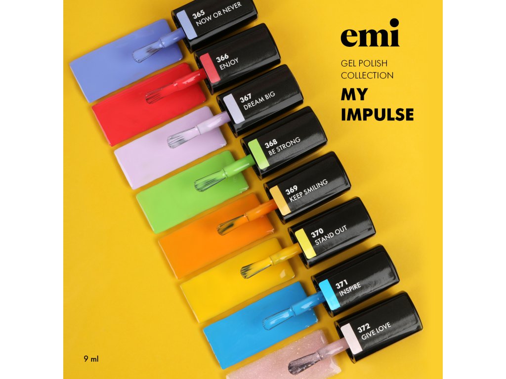 - E.MiLac MI Stand Out #370 je barva slunce; tato barva snadno dodává energii pozitivními vibracemi, i když prší.