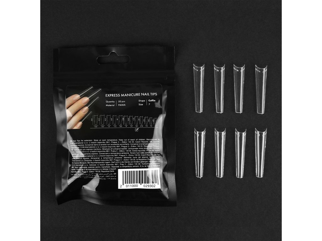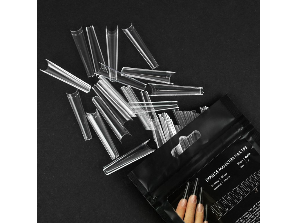 Speciální materiál nehtových špiček pro expresní manikúru umožňuje opilovat a dodat nehtu libovolný tvar a délku. Vypadají jako přírodní nehty.