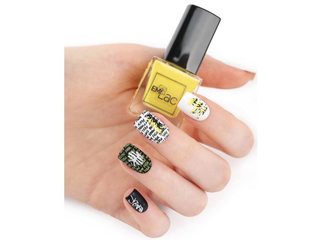 - Na rozdíl od ultra silných laků na nehty s gelovým efektem mají laky razítkovací barvy vyšší pigmentový vzorec a také sytější a hutnější barvu, která je nezbytná pro vytvoření jednotné a kontrastní kresby na absolutně jakémkoli podkladu.