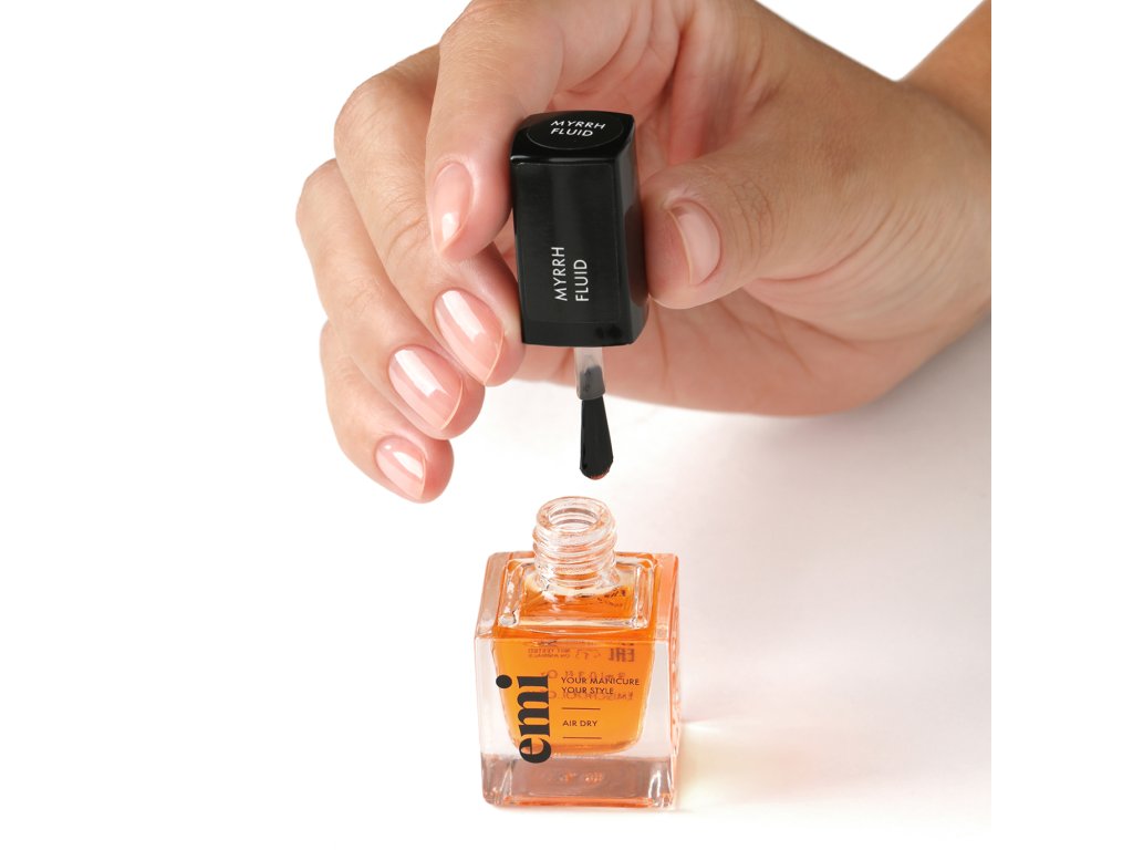 - Myrrh Fluid naneste na suché, čisté nehty ve 2 vrstvách.