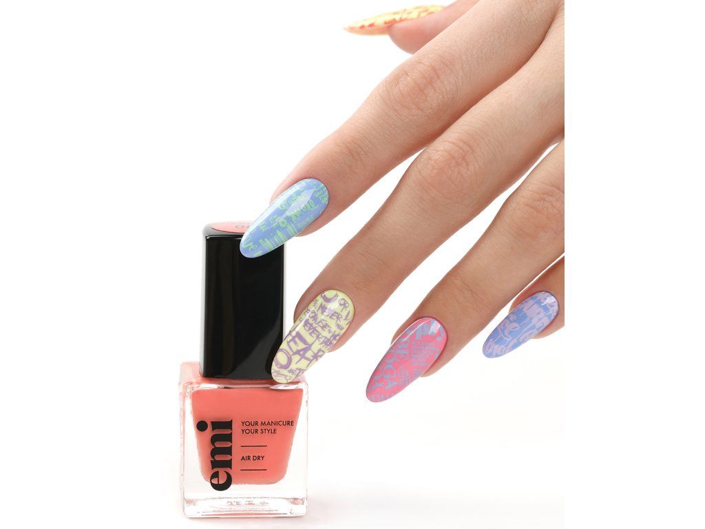 - Na rozdíl od ultra silných laků na nehty s gelovým efektem mají laky razítkovací barvy vyšší pigmentový vzorec a také sytější a hutnější barvu, která je nezbytná pro vytvoření jednotné a kontrastní kresby na absolutně jakémkoli podkladu.
