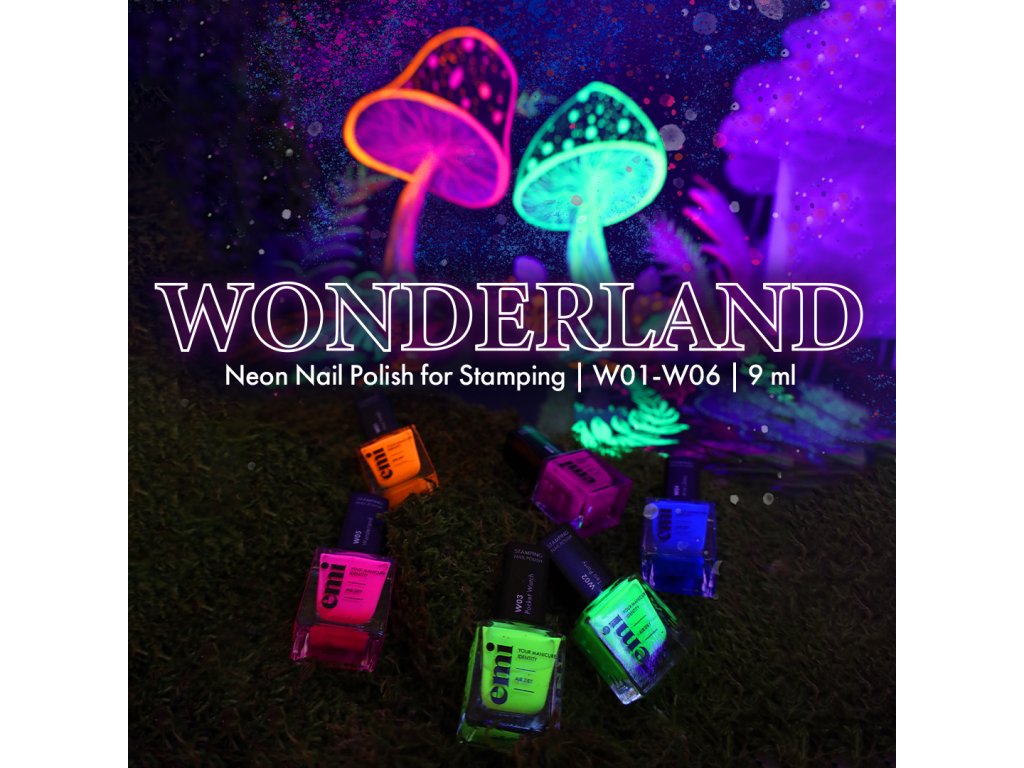 Kolekce Wonderland - Neonové zázraky pro vaši manikúru! Představujeme kolekci "Wonderland" - úžasné neonové laky na nehty pro razítkování, které oživí vaši manikúru a ponoří vás do kouzelného světa "Alenky v říši divů". Těchto šest úchvatných neonových ohnivých barev vám dodá magii a jedinečnost v každém pohledu. Každý lak na nehty pro razítkování z kolekce "Wonderland" se pyšní vysokou pigmentací a perfektní konzistencí, zajišťující snadnou aplikaci pro neuvěřitelně živou barvu. Objevte kouzlo s kolekcí "Wonderland" a nechte svou manikúru odrážet úžasné dobrodružství Alenky. V tomto světě není místo pro mdlé odstíny, jen neonové barvy a radost z tvůrčího vyjádření!