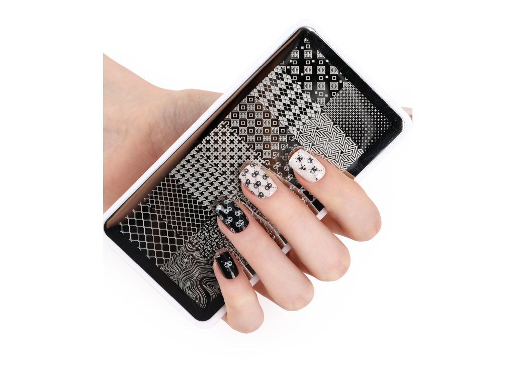 - Razítkovací destička na nehty má velikost 6×12 cm, díky čemuž je tak šikovná a pohodlná na uložení na pracovním stole nehtové umělkyně.