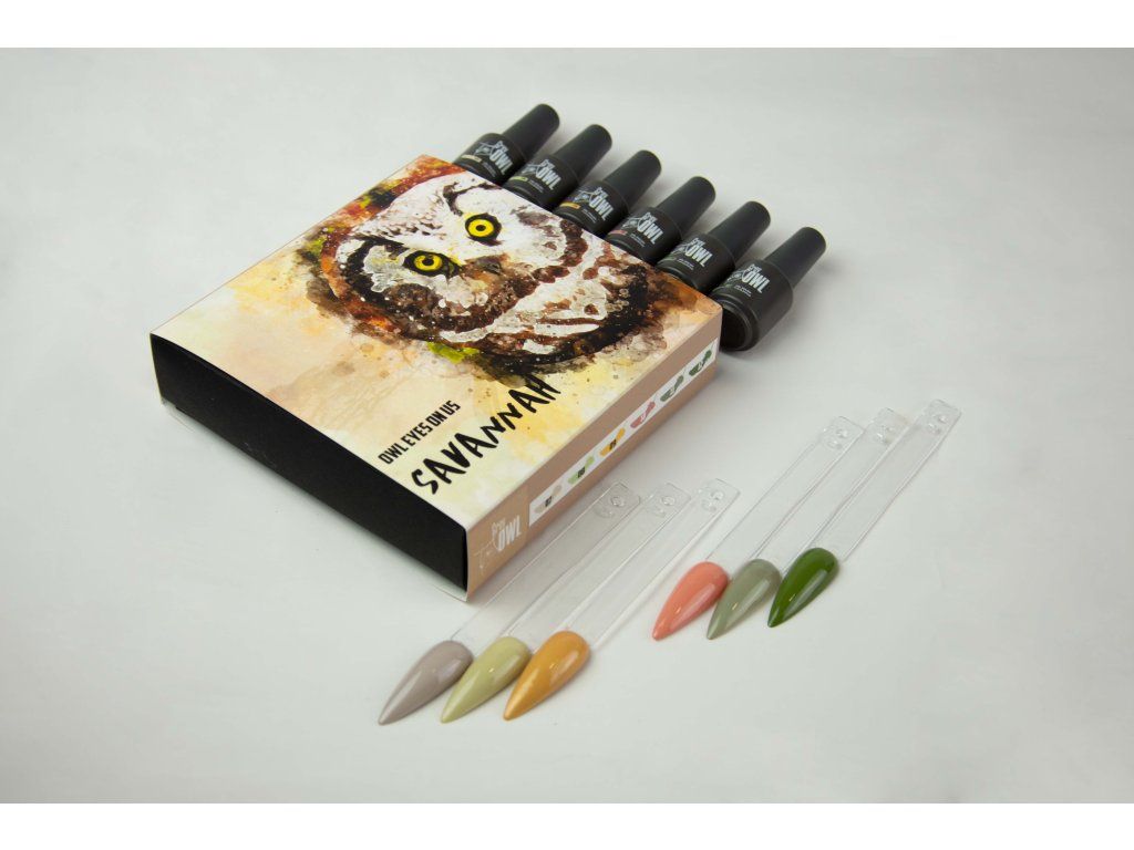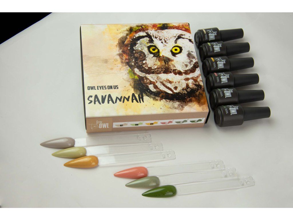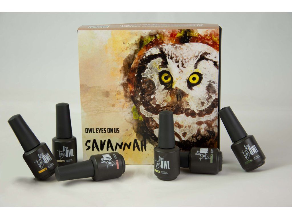 🧡 Objevte kouzlo africké savany! Tato sada Grey Owl gel laků přináší teplé a přírodní odstíny inspirované sluncem zalitou krajinou, písečnými dunami a majestátními zvířaty savany.