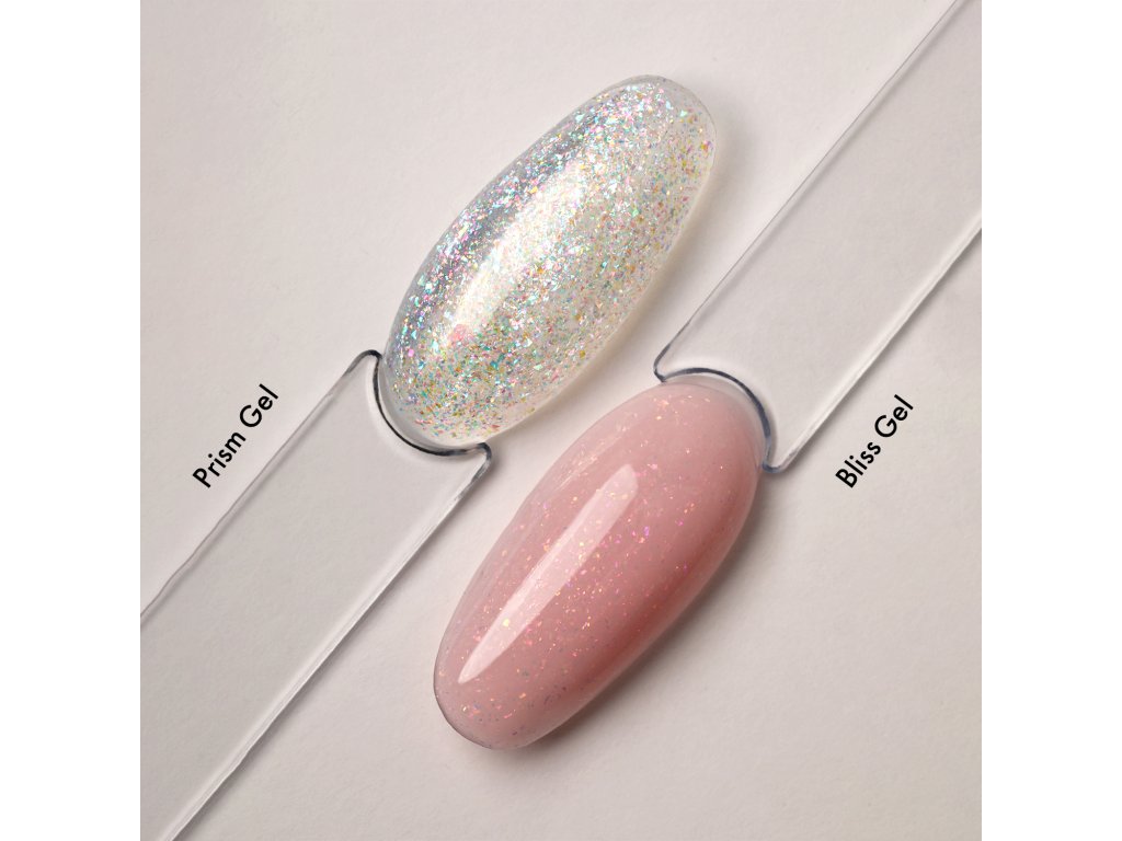 Prism Gel - jiskřivý průsvitný odstín s holografickým efektem. Hypnoticky duhové okraje se proplétají s průhledným podkladem, zdůrazňují krásu přírodních nehtů, uchvacují svými efekty a zvýrazňují manikúru zevnitř.